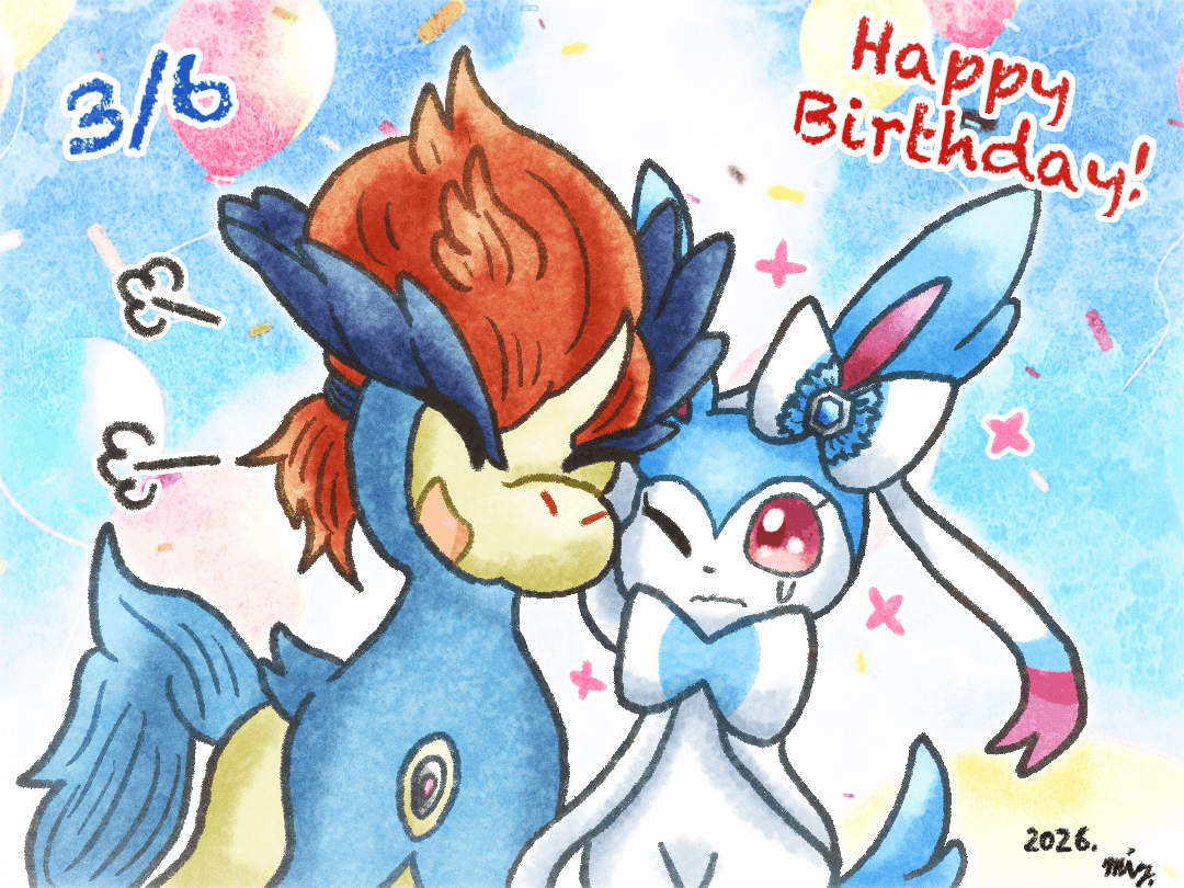 デュランダル(ケルディオ♂寄)、アマネ(☆ニンフィア♀)